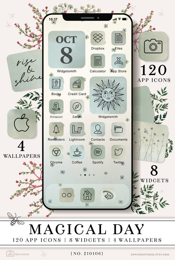 Green Boho App Icons Widget Smith Iphone Ios 14 Hand Drawn Etsy Israel